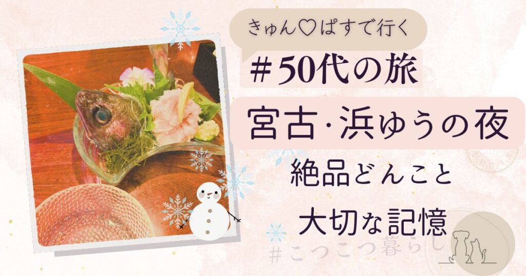 岩手・宮古の夜。予約必須の名店『浜ゆう』で味わった絶品「どんこのたたき」と、店内に刻まれた津波の記憶。浄土ヶ浜パークホテルからのバス移動で起きた「バス停の罠」やタクシー運転手さんに聞いた熊の話まで、50代の大人旅に役立つリアルな体験記をお届けします。 -