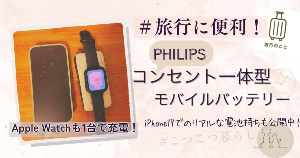 旅行中の「充電どうしよう」という不安を解消してくれた、フィリップスのコンセント一体型モバイルバッテリー(10000mAh)。iPhone17で実際に使った正直レビューとメリット・デメリットをまとめました。