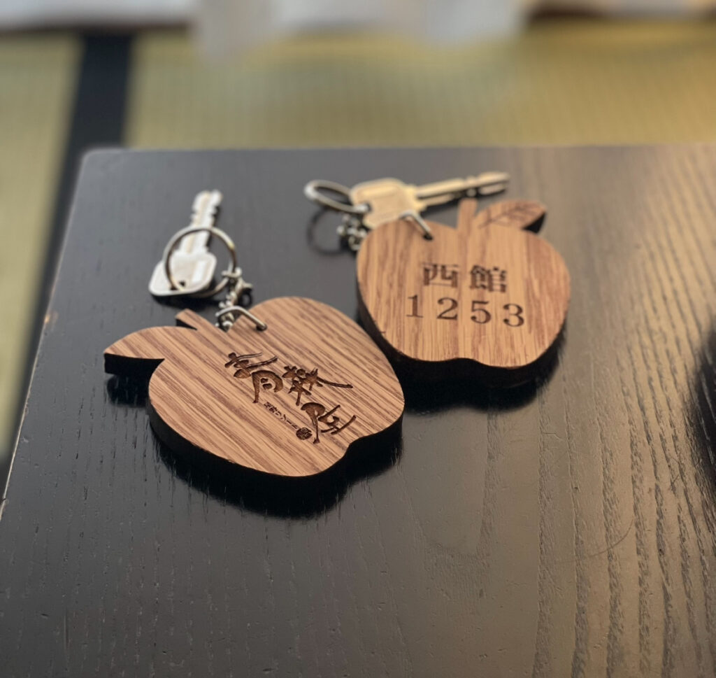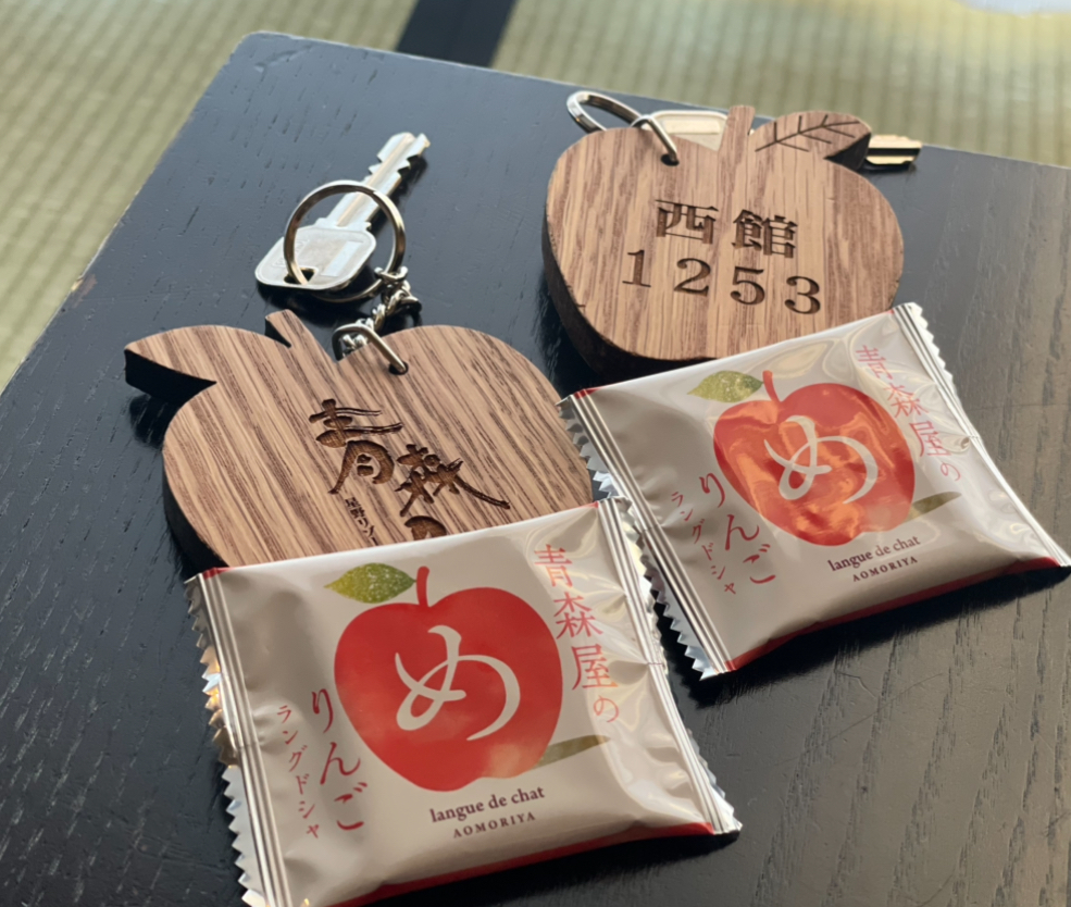 りんごの木彫りキーホルダーや「りんごラングドシャ」のお菓子など、細やかな演出がとても嬉しかったです。