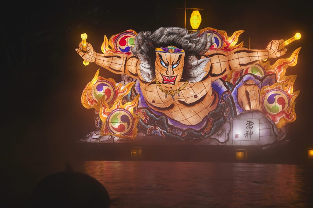 夜は“ねぶた”が浮かび上がる幻想的な光景