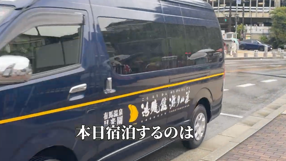 有馬温泉駅に到着後、宿に電話すると送迎バスで迎えに来てもらえます。大きな荷物がある場合でも安心です。