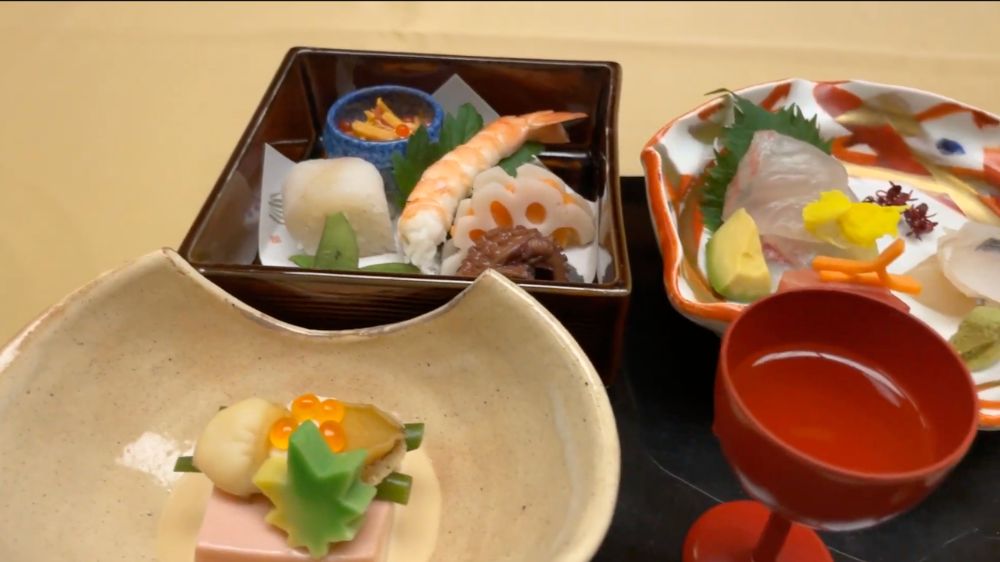 夕食の懐石料理は見た目も美しく、神戸牛のステーキや季節の天ぷら、炊き立てのご飯まで丁寧な仕上がりでした。デザートも充実していて大満足でした。