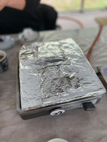 薄くスライスした松茸がアルミホイルのなかにお酒といっしょに包まれていて
