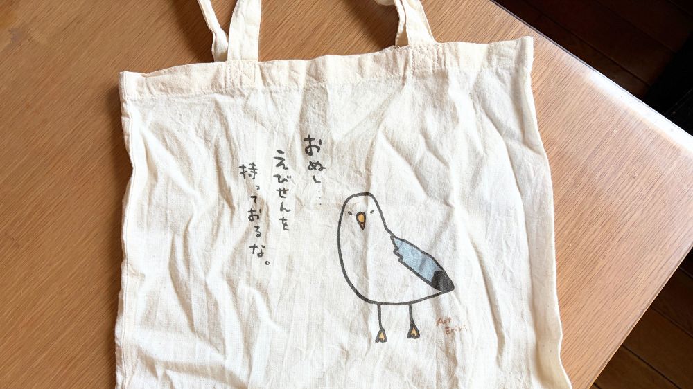 ウミネコのイラストに「おぬしえびせんを持っておるな」というセリフが書いてあるやつ。