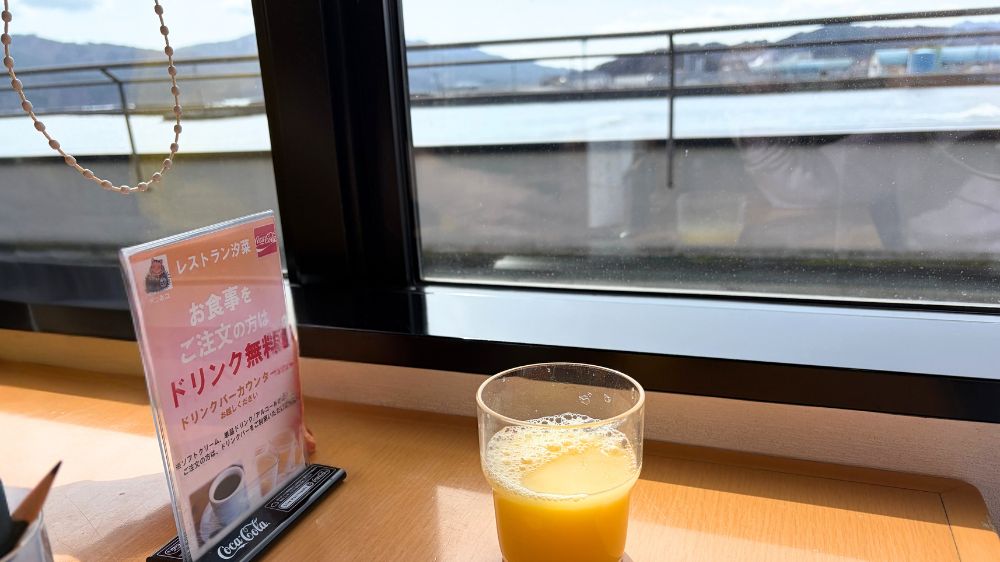 オレンジジュースを片手に海を眺めながらいただきます。