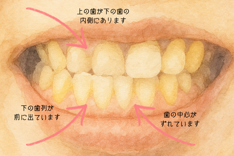 - 上の歯が下の歯の内側にあります