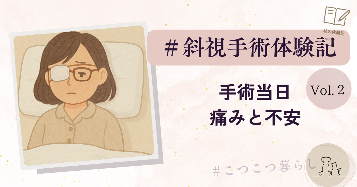斜視手術の初日は、想像以上の痛みと、見え方への不安に押しつぶされそうになった日でした。